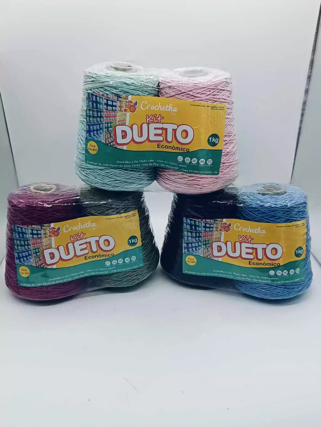 Composto por 2 cones de 500g cada, este kit oferece uma combinação de cores sortidas para estimular sua imaginação e dar vida a uma variedade de projetos de crochê.